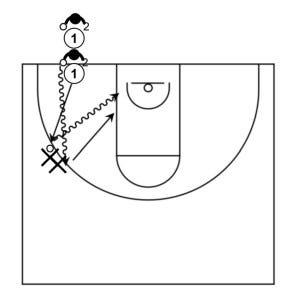 Ejercicio para entrenar situación de ayudas y recuperación en situación 3c3. Progresión: de 1c0+1 a 3c2(+1).