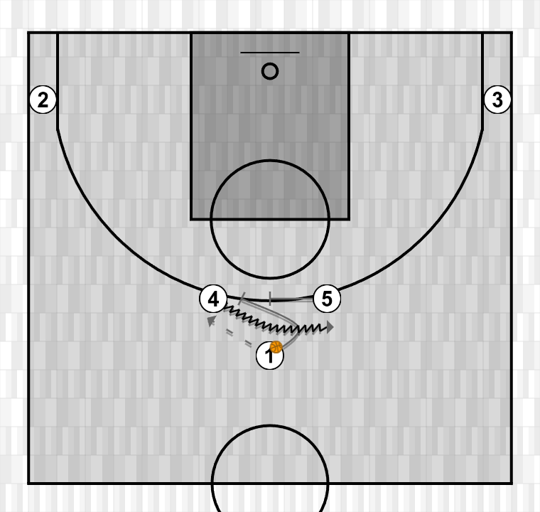 En caso de imposibilidad de pase por estar la línea de pase defendida, jugar con el “interior”, para finalizar con mano a mano del jugador que queríamos que recibiera inicialmente o a partir de dos bloqueos indirectos de los jugadores de esquina o 45.
