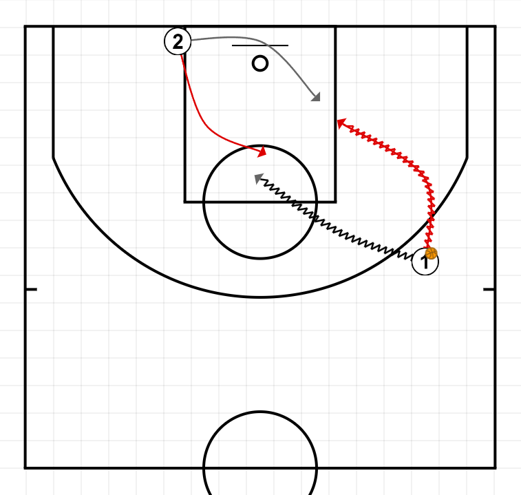 Se inicia con auto-rebote y el defensor elige a quien de los dos atacantes defiende.