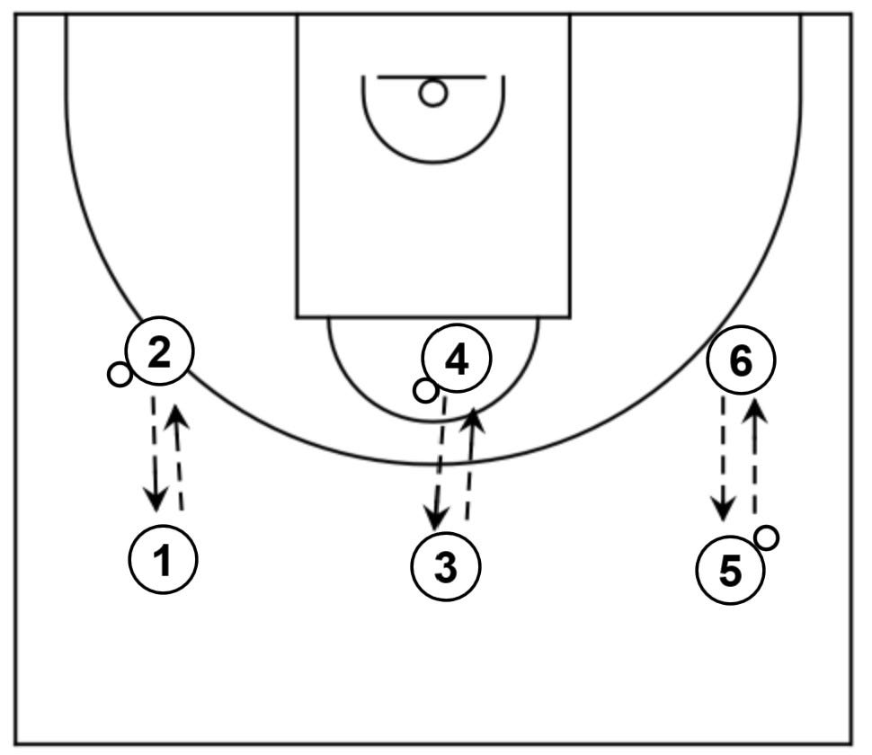 El último paso sería añadir dos opciones de pase y jugar situaciones de 3c3.
