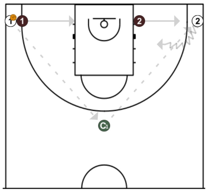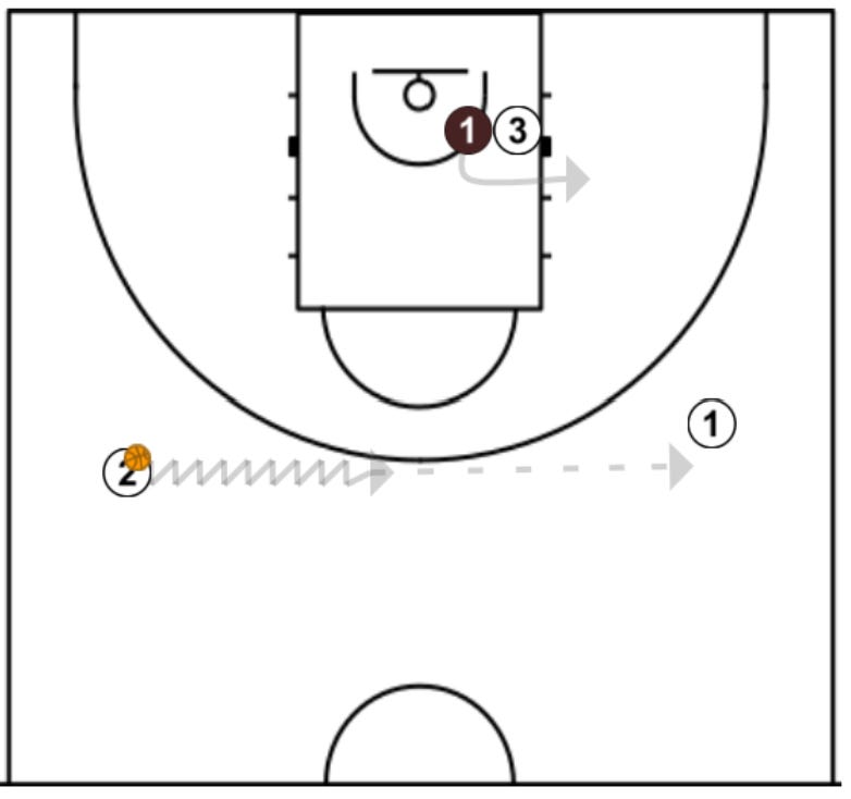 Orientar hacia el 2c1. La jugadora interior sale VERTICAL al 2c1.