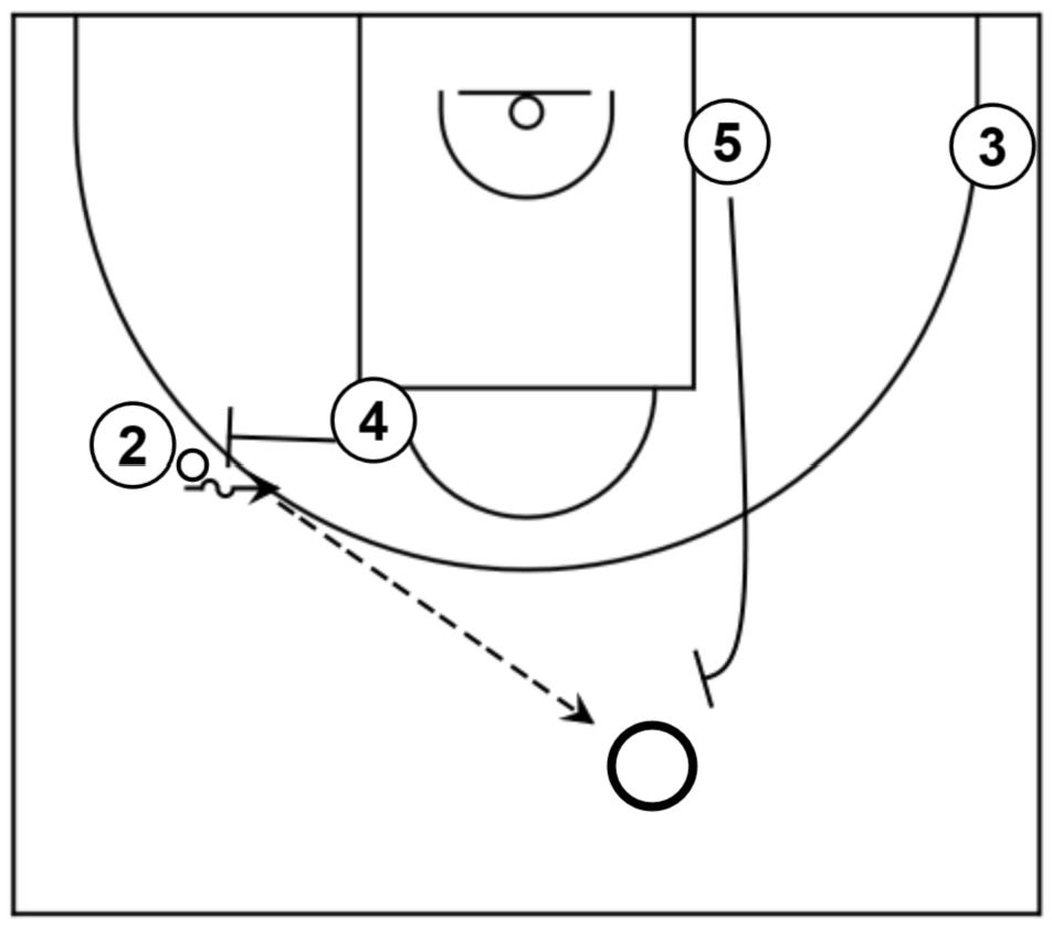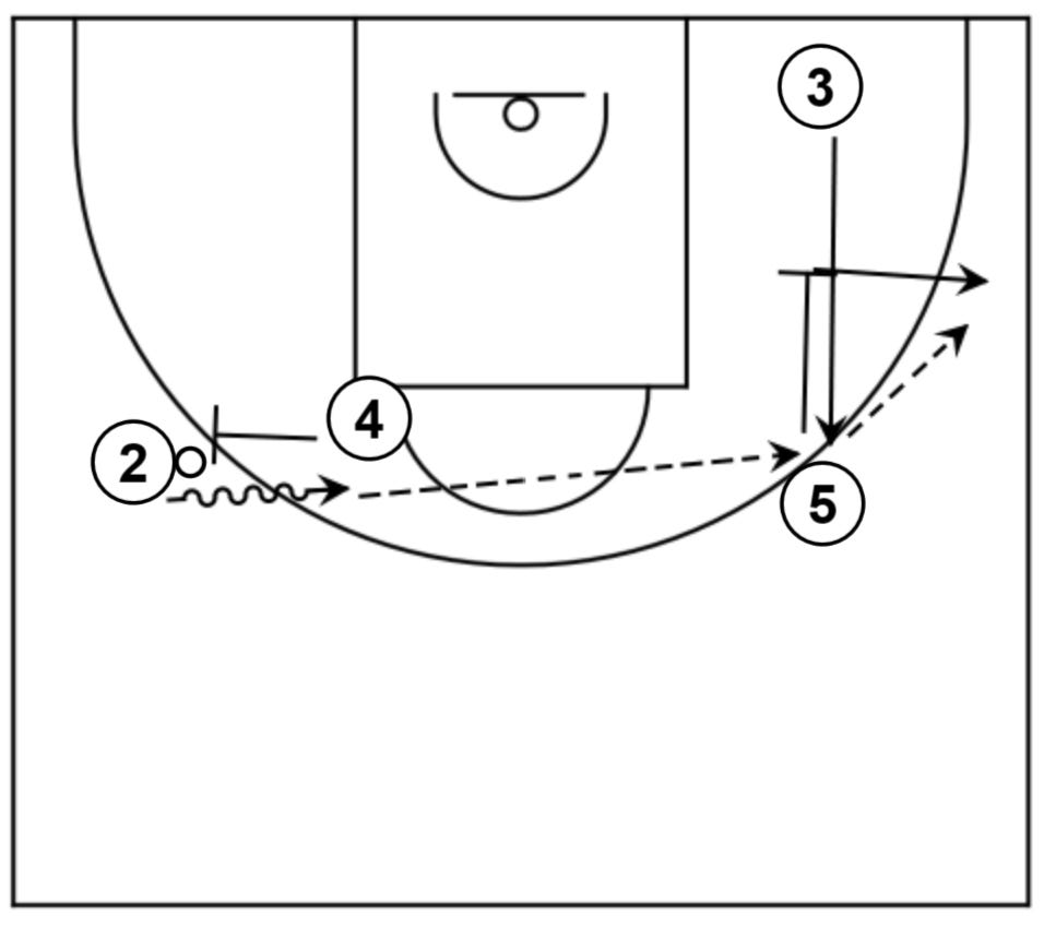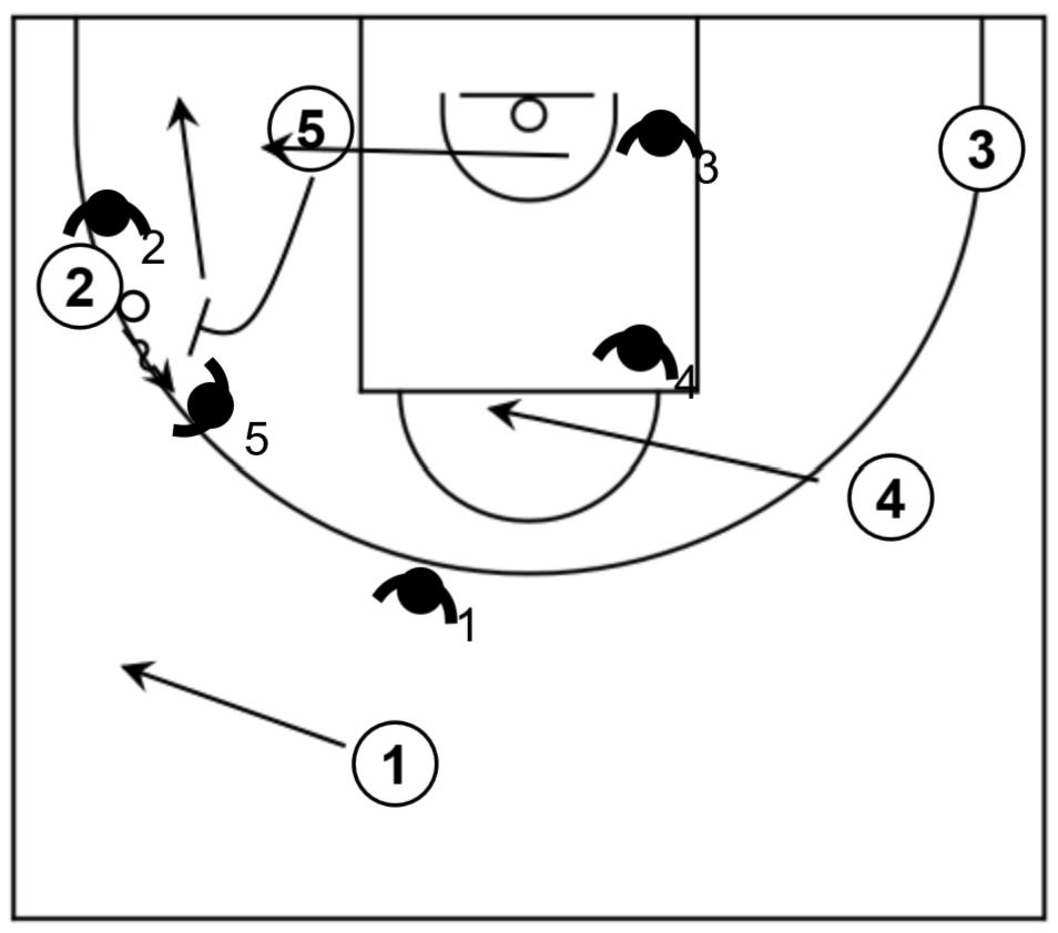 Situación donde (5) se encuentra escondido con el objetivo que fije a su defensor para evitar que pueda ayudar.