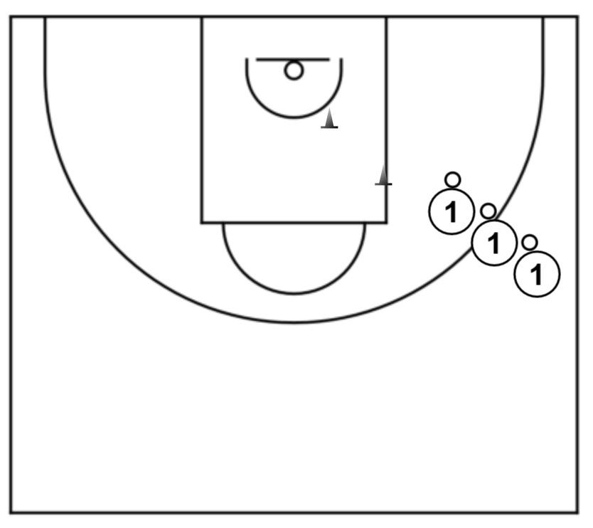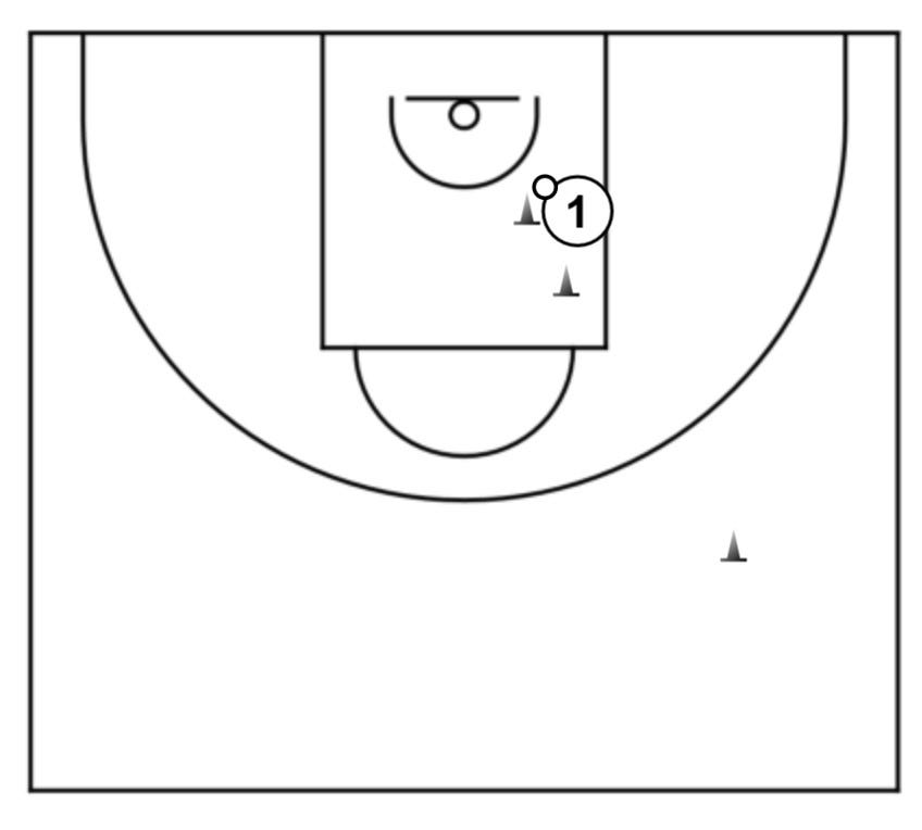 Finalización 1: Bote mano izquierda (penetración interior), apoyos izquierda- derecha y finalización con mano derecha.