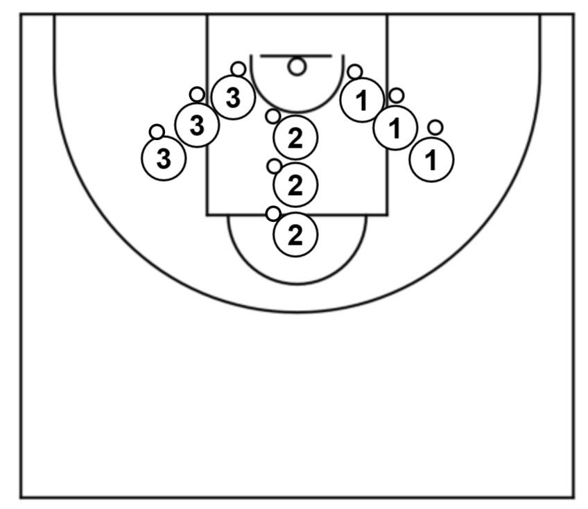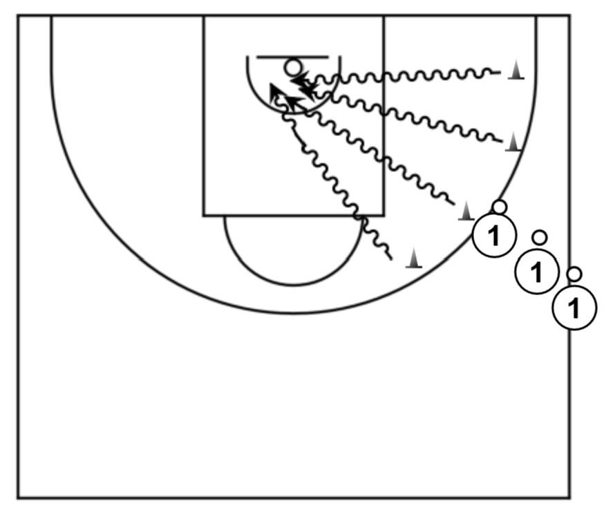Misma dinámica añadiendo defensor estático para dificultar la entrada.