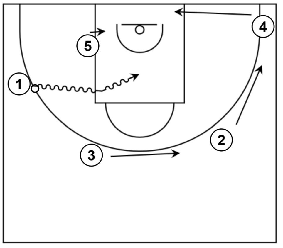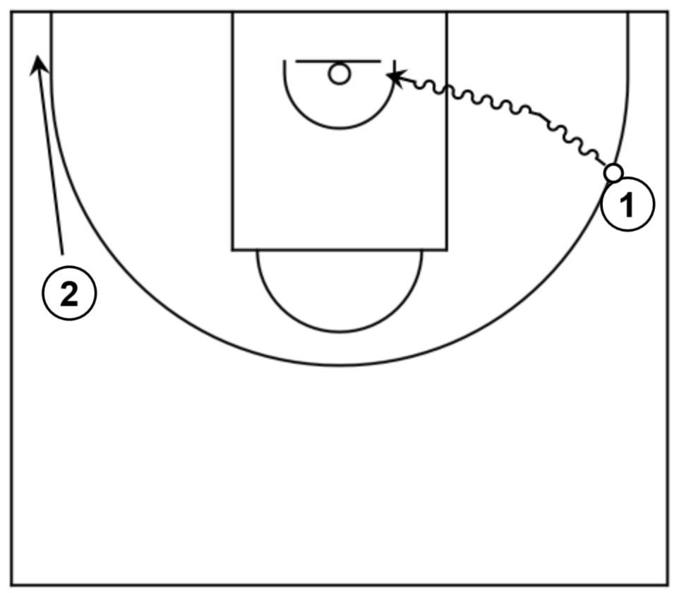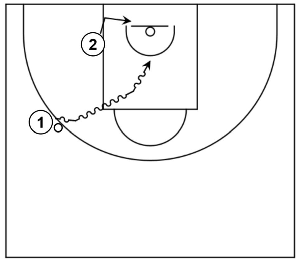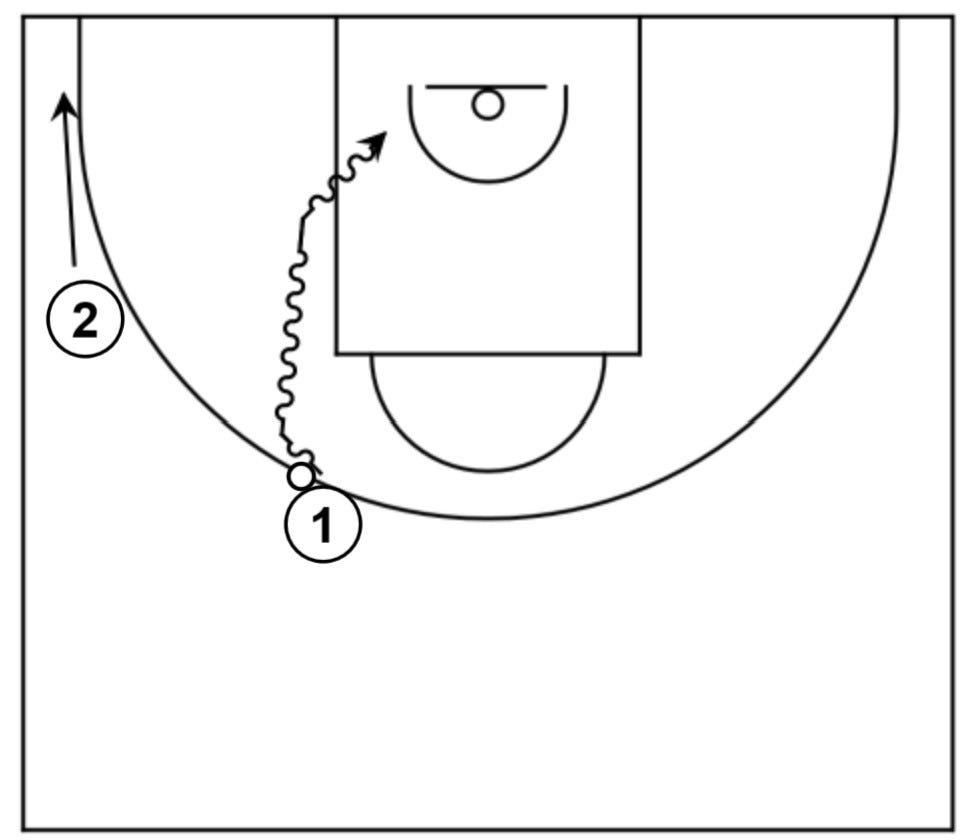 Jugar línea de fondo. La línea de fondo como principal herramienta para romper triángulos defensivos. Si el defensor 1 desea mantener el triángulo defensivo de ayudas, debe corregir su posición, siendo obligado a defender debajo de su aro, lo que dificulta su labor. "La línea de fondo es el espacio más difícil de defender de todo el baloncesto porque rompe todos los triángulos defensivos". Además, la línea de fondo "estira los espacios ofensivos".