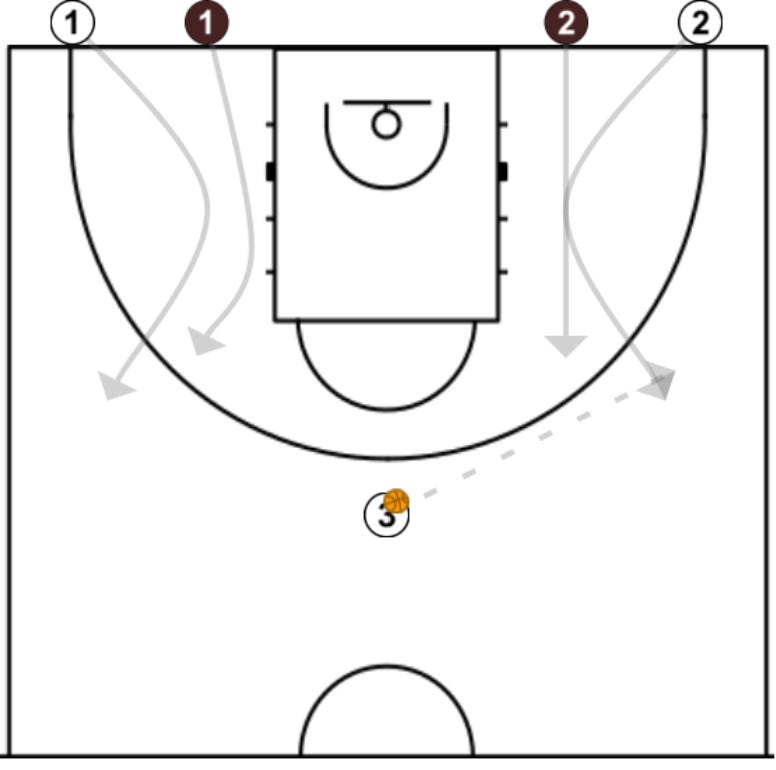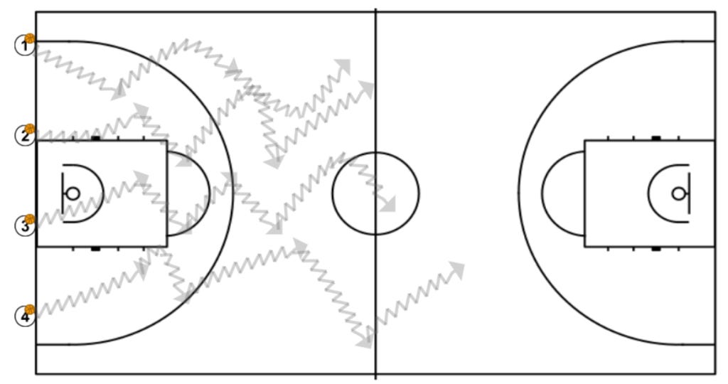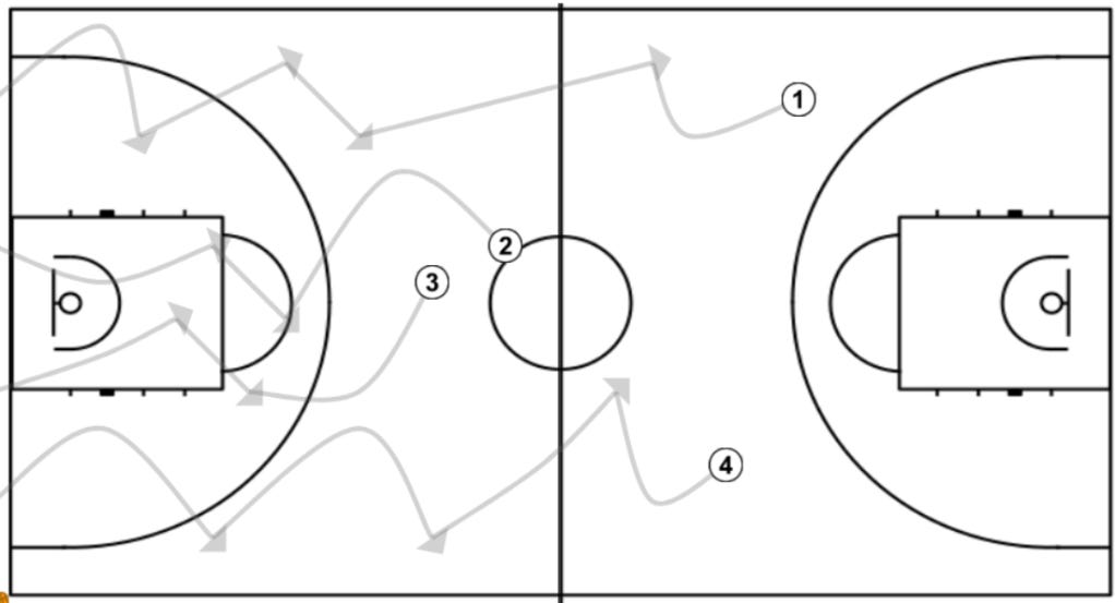 Si se anota canasta o se recupera el balón se juega 2c2 en el otro aro.